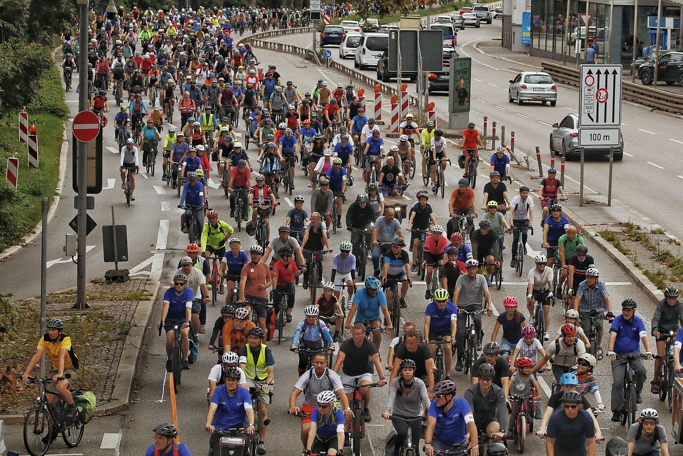 5.400 Radfahrende rollen über die großen Bundesstraßen in die Landeshauptstadt zur Kundgebung mit Politprominenz.
